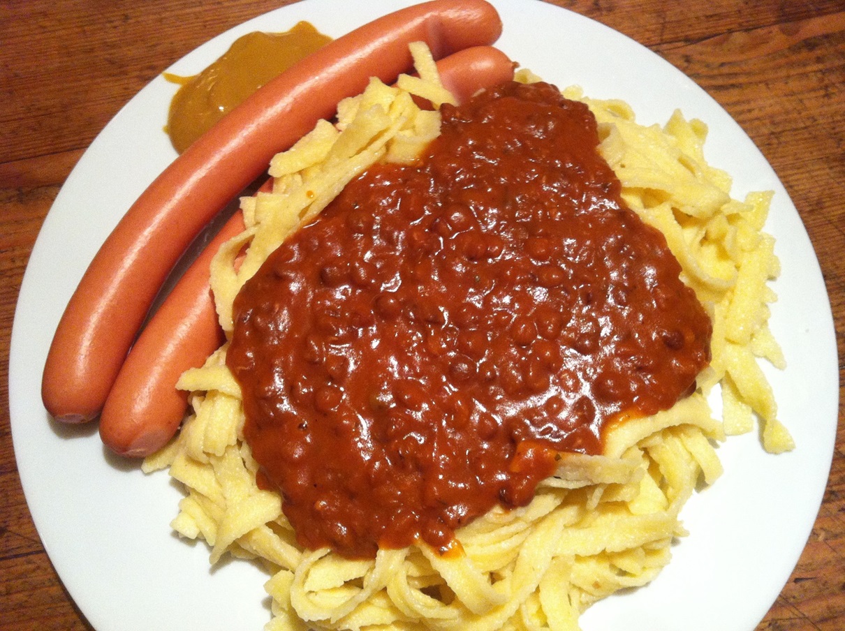 Linsen mit Spätzle und Saitenwürstle